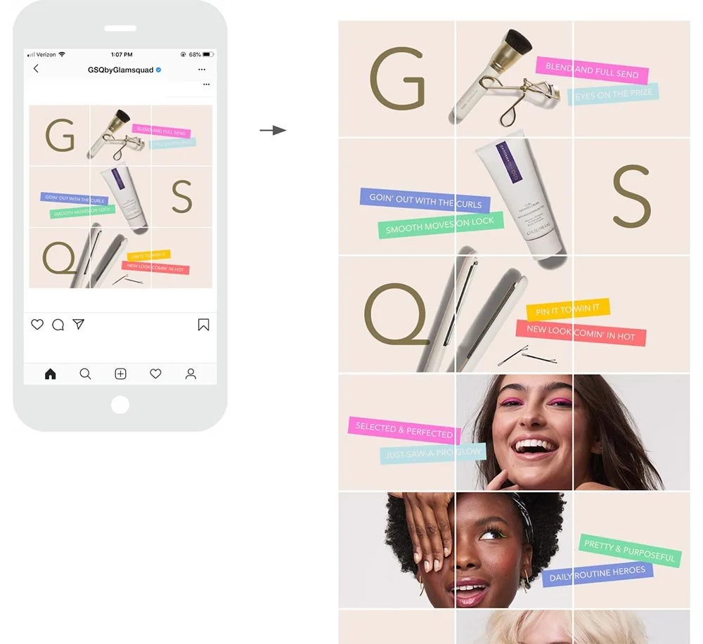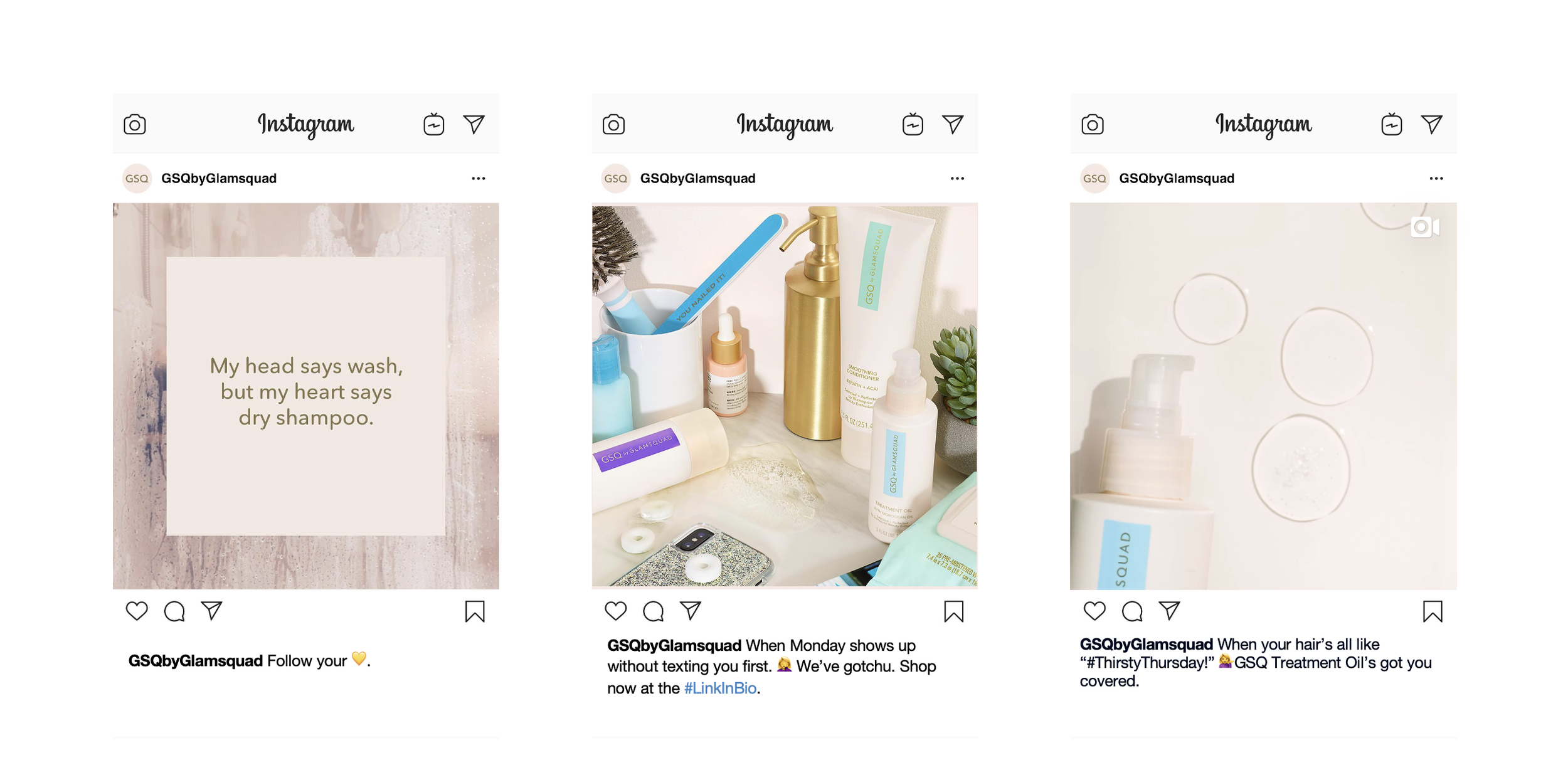 As a newcomer to the beauty space, CVS was launching GSQ by Glamsquad, and had a small budget but big dreams: making a name for itself amongst a sea of heavy-hitters in an already saturated market. This new line of beauty tools was an affordable way to give any bathroom shelf an upgrade. We successfully launched IG account GSQbyGlamsquad entirely on social, building the brand from the ground up. From initial teaser launch Post 1, to on-going engagement (Stories, Reels, Polls, Quizzes, etc.), we positioned GSQ as the go-to brand for beauty & haircare essentials. We capitalized on the growing #shelfie movement on Instagram and created our own using GSQ go-tos with share-worthy social content, a killer brand vibe, and engaging a community of beauty pro’s and newbies. Lead all photoshoots, design, and social-first content across paid and organic.